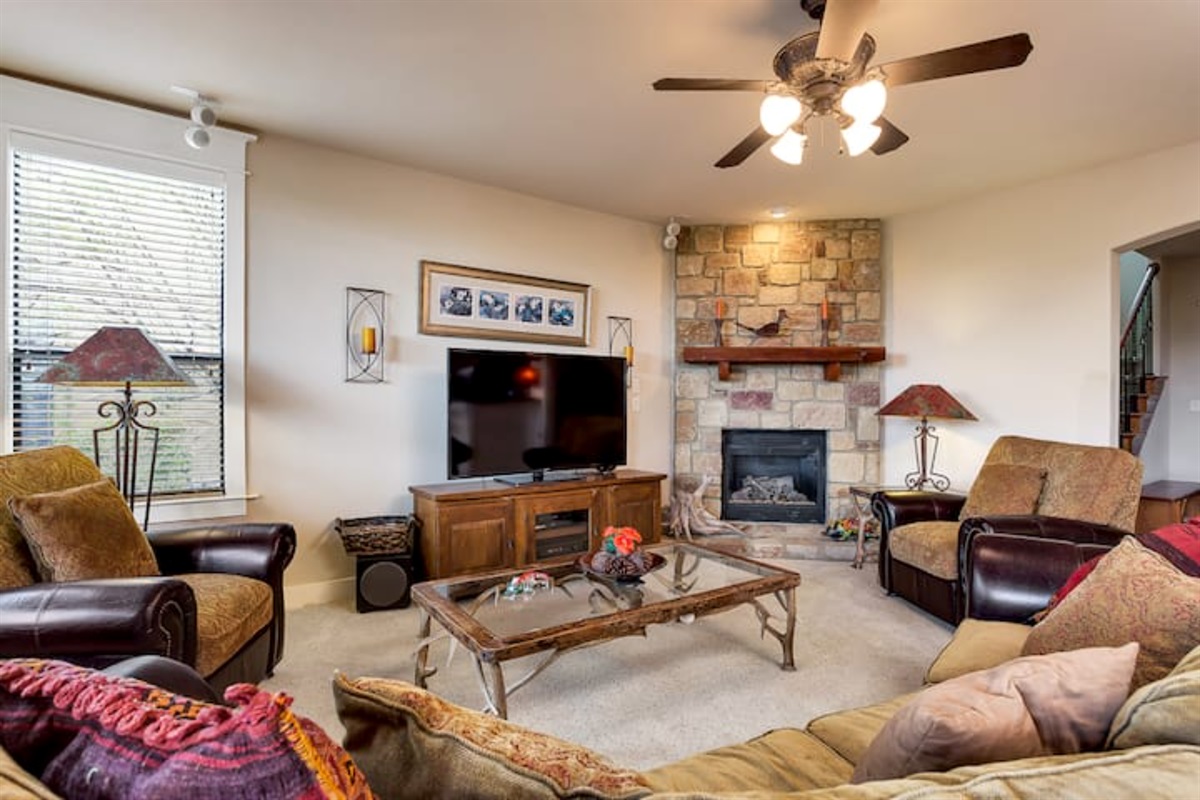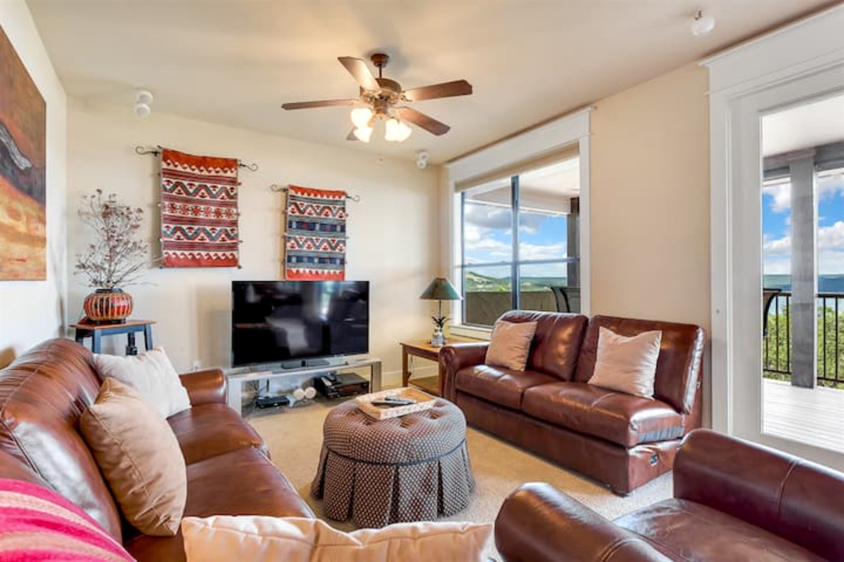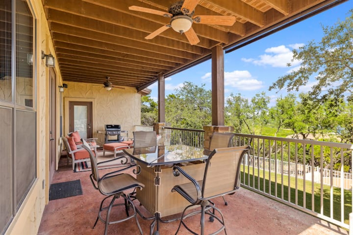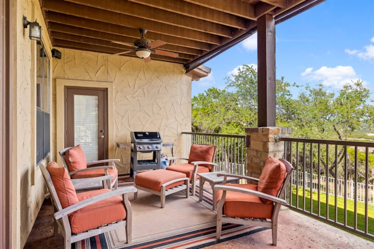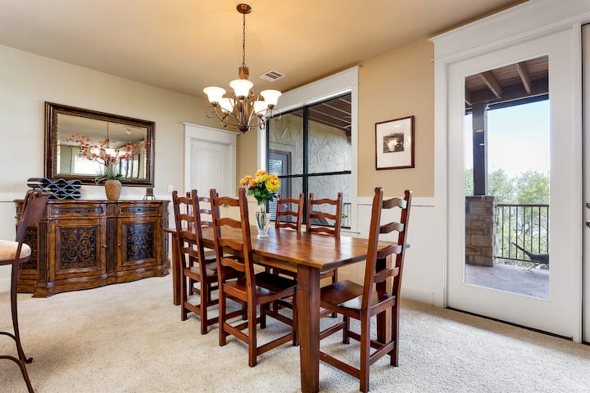 This 2,500 SF Home has 4 bedrooms and 4 full baths, plus a queen sofa bed in the game room and sleeps up to 10. Enjoy the upstairs loft media/game room with access to a large porch with a panoramic view of Lake Travis. The Home sits on the HILLTOP of the Hollows which is the highest point at 800 feet above the ground level. Next door is another awesome Home with a third Home just a few doors down that will accommodate your large group and is easily accessible to the Smokehouse across the street.