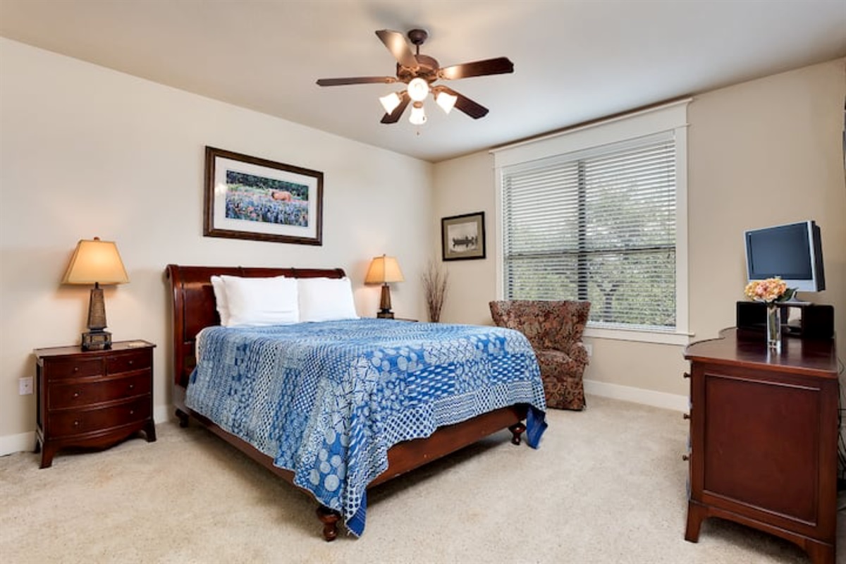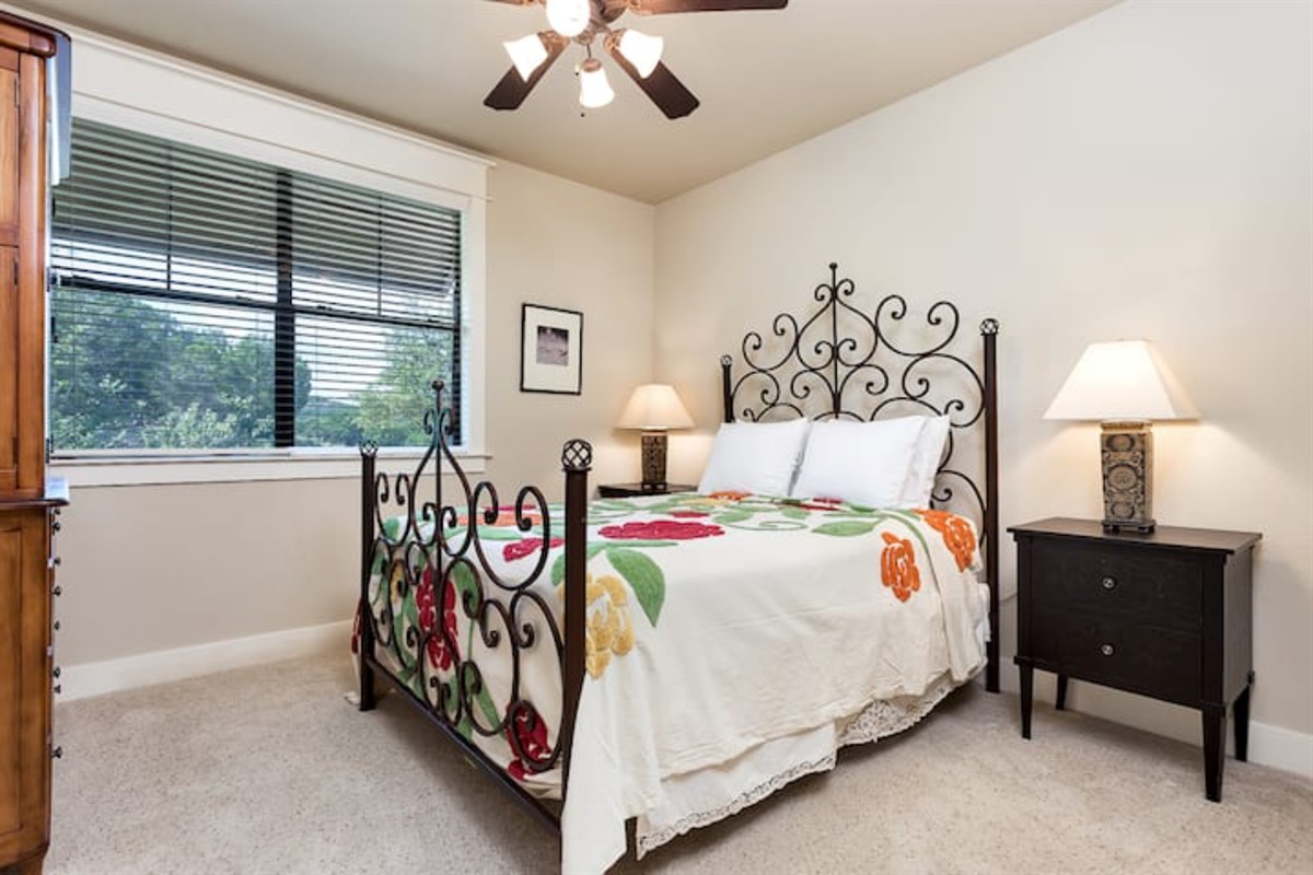 This beautiful Home has 2,500 SF, four bedrooms, four baths, sleeps up to 8 with an upstairs loft media room/game with a big screen TV and two large porches to enjoy a panoramic view of Lake Travis. Aside from the great features of this home, it sits on the “HILLTOP” of the Hollows, which is the highest point at 800 feet above the ground level on the 1400+ acres of the Hollows! This property is next door to another awesome Home with a third Home just a few doors down that will help accommodate your larger groups and is readily accessible to the Smokehouse across the street.