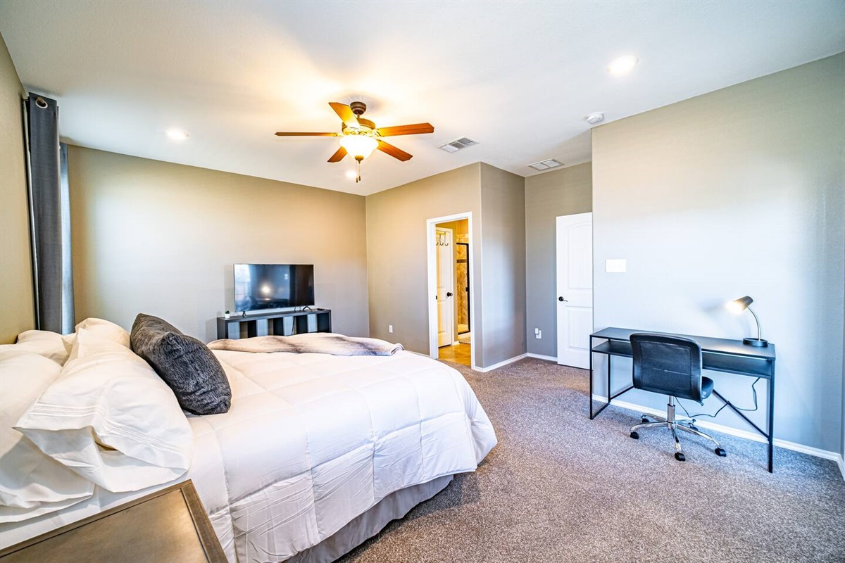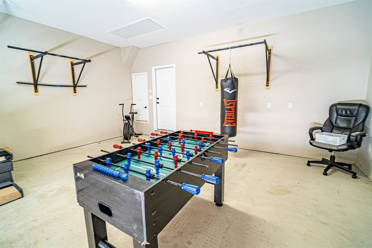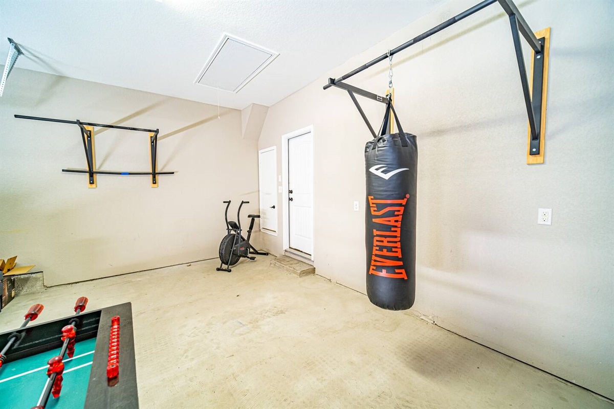 Rooms are comfortable and ready for your relaxation preference. 2 of the bedrooms are in the front near the entrance and the Master is at the back of the home. This was a model home so you will enjoy all the upgrades here! We turned the garage into an athletic and fun zone so feel free to kick box, work out our play Foosball.