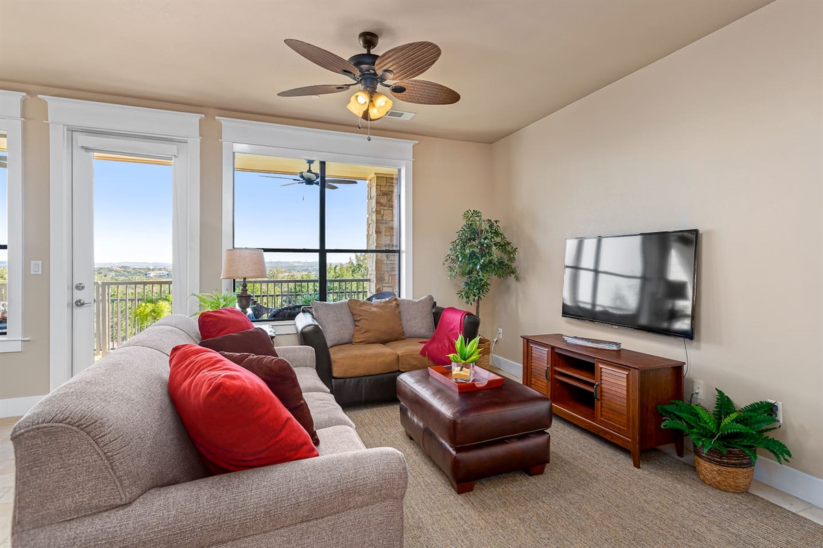 Great lake views, awesome large porch, all new interior and a private attached garage! Perfect for affordable weekend escapes with beautiful views of Lake Travis and the Hill Country. This 1,045 SF Hilltop Villa has 2 bdrm/2 bath and a large porch with a great outdoor living, dining and grilling area. The Hollows Resort offers amazing amenities; 15 miles of hiking trails, 4 pools, a spa pool and hot tub, Grill/Bar, smokehouse grills, outdoor kitchen areas by the pools, playground, fitness.