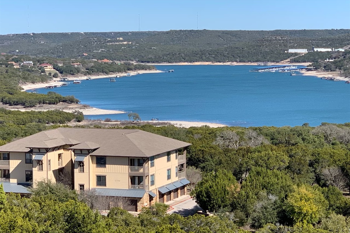 Great lake views, awesome large porch, all new interior and a private attached garage! Perfect for affordable weekend escapes with beautiful views of Lake Travis and the Hill Country. This 1,045 SF Hilltop Villa has 2 bdrm/2 bath and a large porch with a great outdoor living, dining and grilling area. The Hollows offers amazing resort amenities; 15 miles of hiking trails, 4 pools, a spa pool and hot tub, Grill/Bar, smokehouse grills, outdoor kitchen areas by the pools, playground, lakefront access, fitness center, marina with boat and jet-ski rentals.