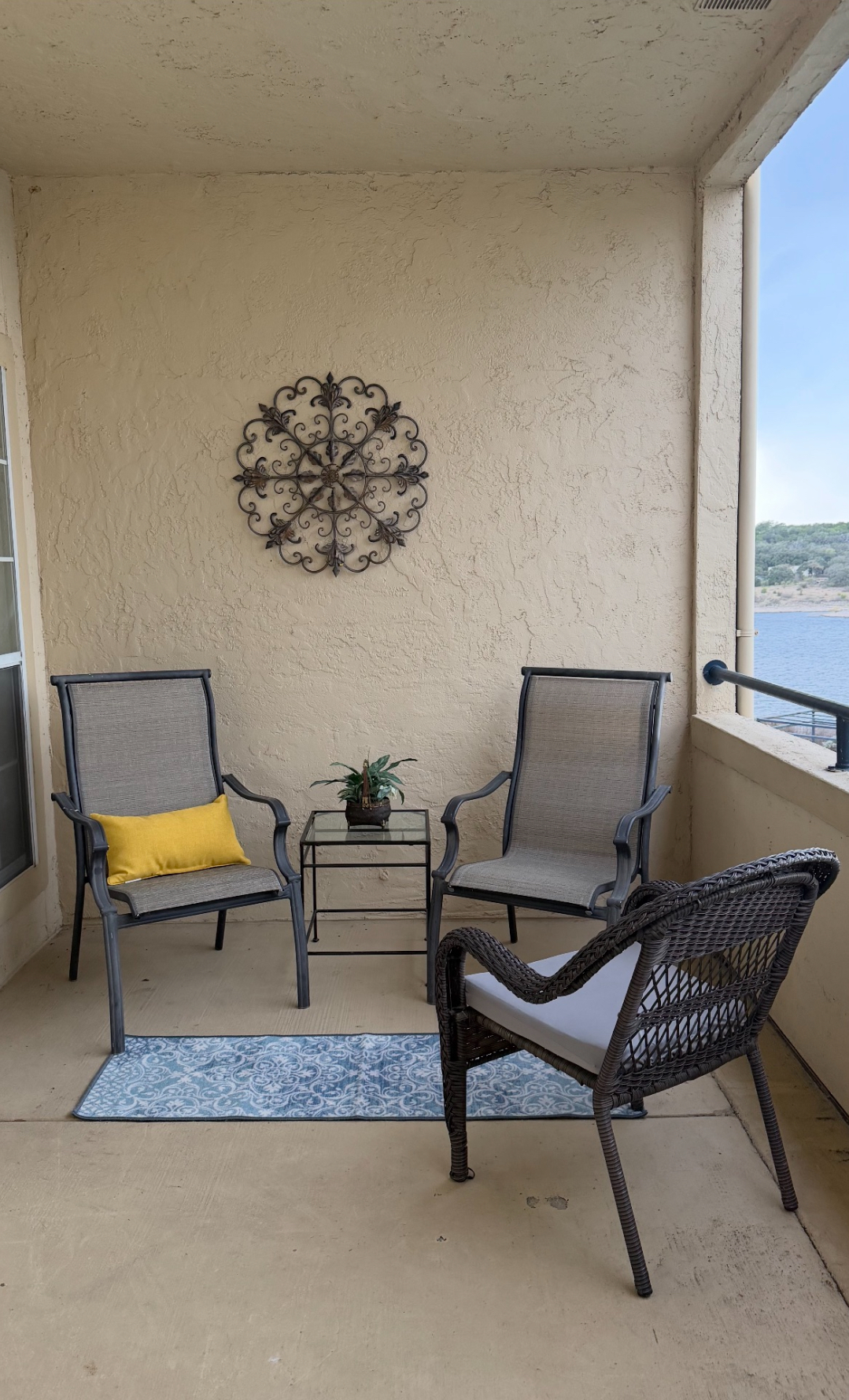 One bedroom one bath villa overlooks beautiful Lake Travis. Enjoy watching the sunset from the patio. With one of the best views from the Island you won't ever want to leave your balcony!