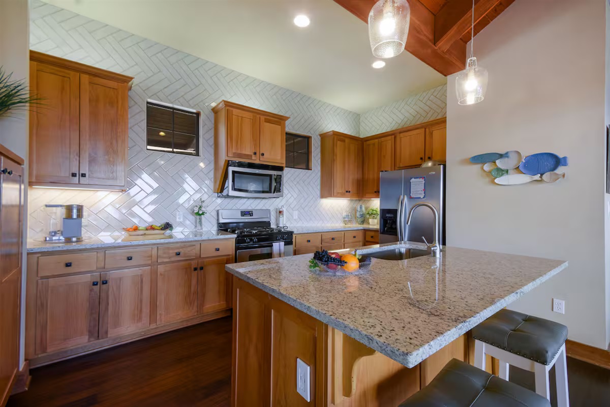 Full Kitchen: Fully equipped gourmet kitchen with granite counters & large refrigerator.