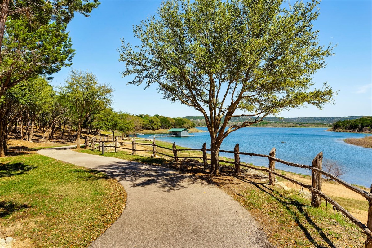 Beautiful lake views of Sandy Creek and Main Basin of Lake Travis, Texas Hill Country, and all complimented by the morning sun. This Villa is 1,440 SF, has three bedrooms, two baths and pet friendly. Located in a quiet area of the HILLTOP, and just a block and a half below the HILLTOP. From this Villa, you can quickly access the walking trails that wind through the entire Hollows Community, or go the other direction to walk down to the Kayak Club and enjoy a beautiful stroll through the woods and over the bridge to observe the natural habitat. A great spot to enjoy the serenity of the surroundings and enjoy the peace and quiet. And pets are welcomed. Snowbirds and Winter Texans Welcomed.