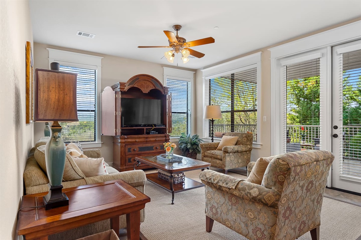 Beautiful 3 Bedroom/2 Bath 1,440 SF, Villa with Hill Country and Lake Travis View at The Hollows Resort. Located in a quiet area of the HILLTOP, and just a block and half from the HILLTOP Smokehouse. Beautiful lake views of Sandy Creek and Main Basin of Lake Travis. A great spot to enjoy the serenity of the surroundings and enjoy the peace and quiet.