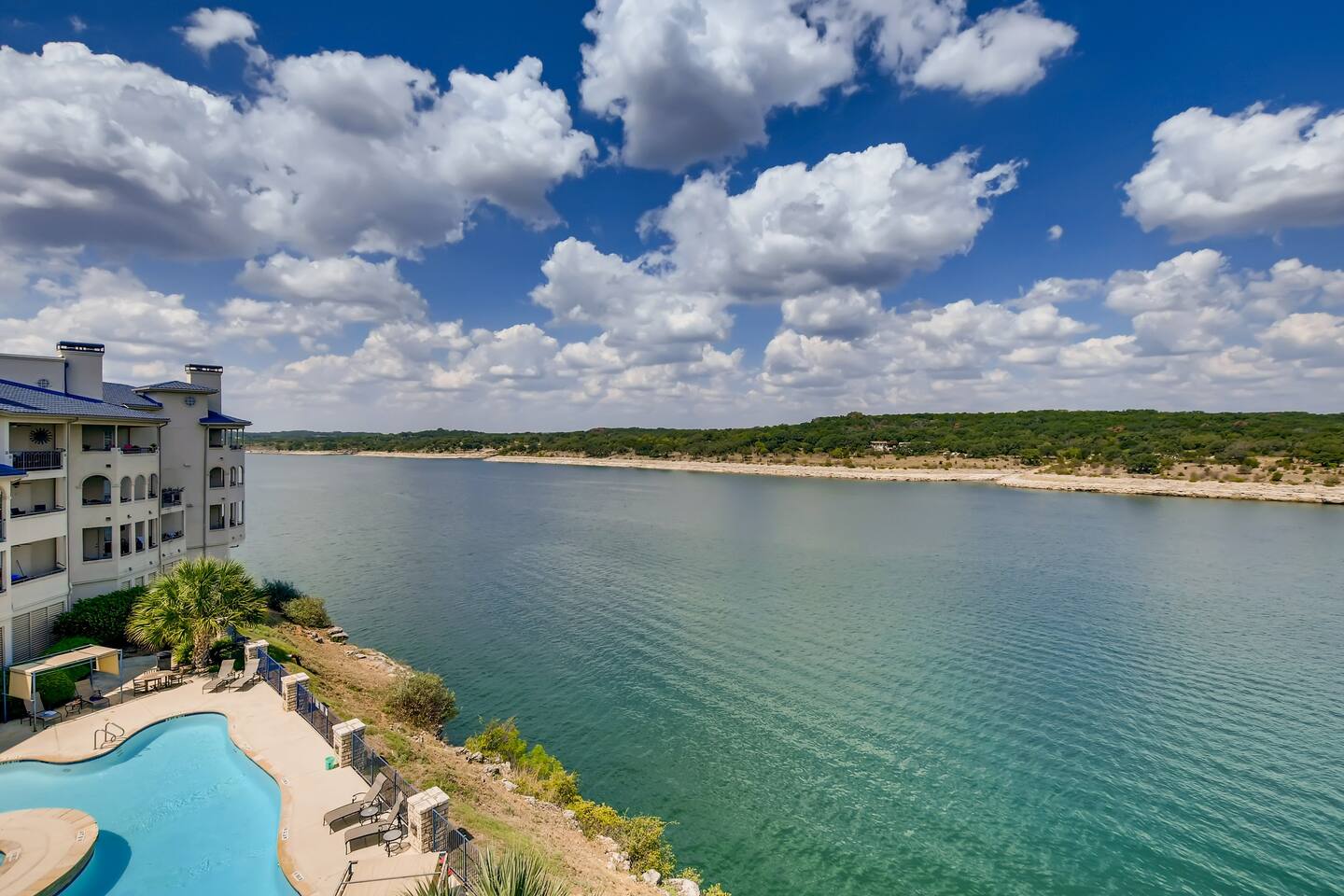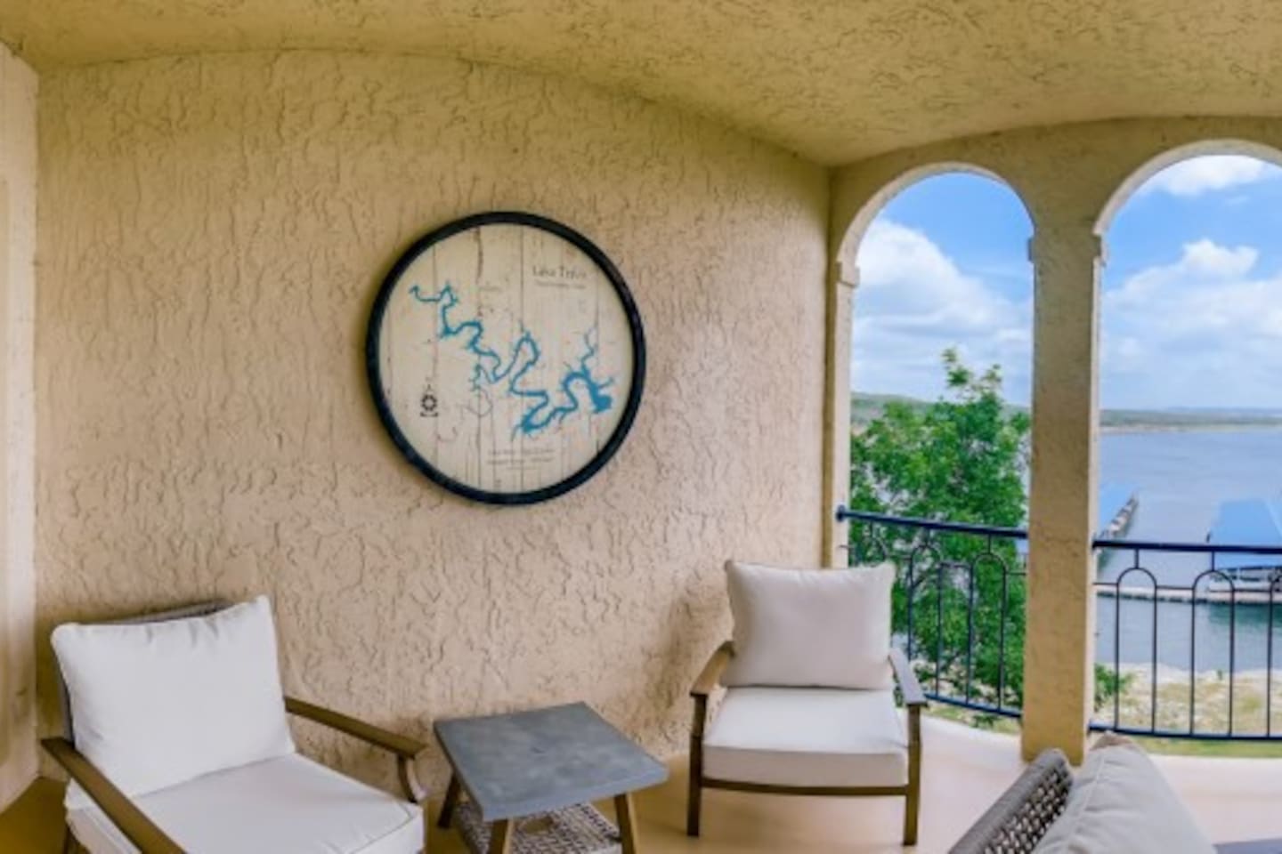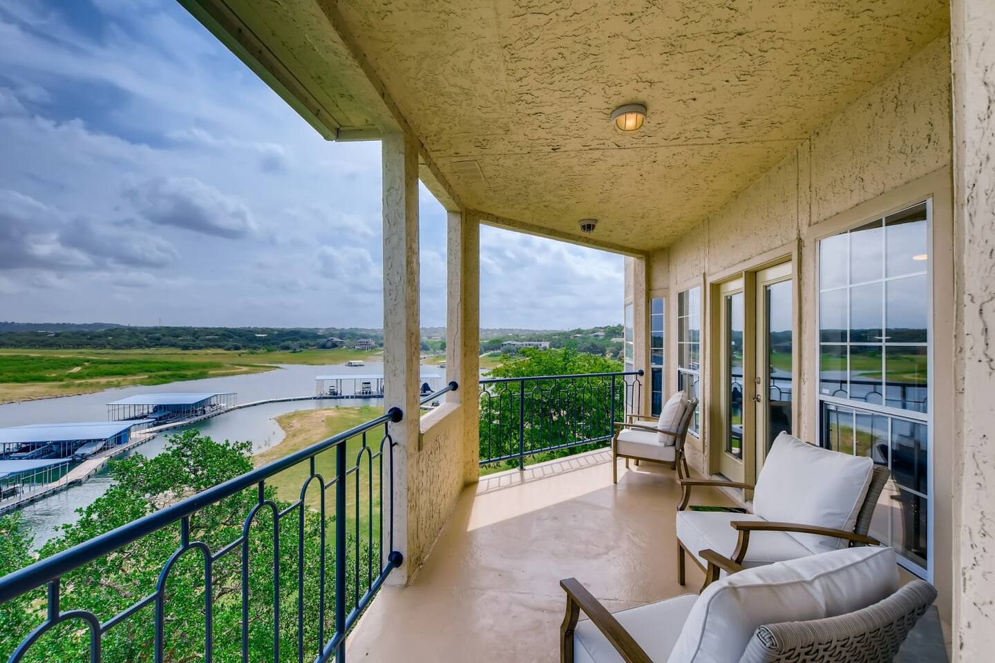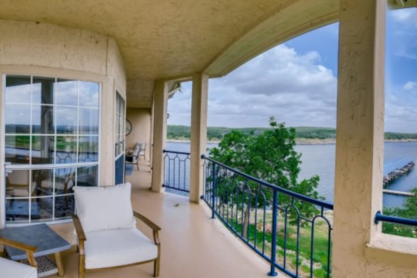 Breathtaking waterfront resort villa with 1750 sf, newly renovated & designer furnished. 3 bed/2 baths, sleeps 6-8 people with unique wrap around porch and panoramic view on lake travis. Full access to island amenities including indoor/outdoor pools, hot tub, spa/fitness facility, tennis court and picnic area. 2 large covered parking spots. 26' boat slip is available to rent. Pets are allowed with additional fee.