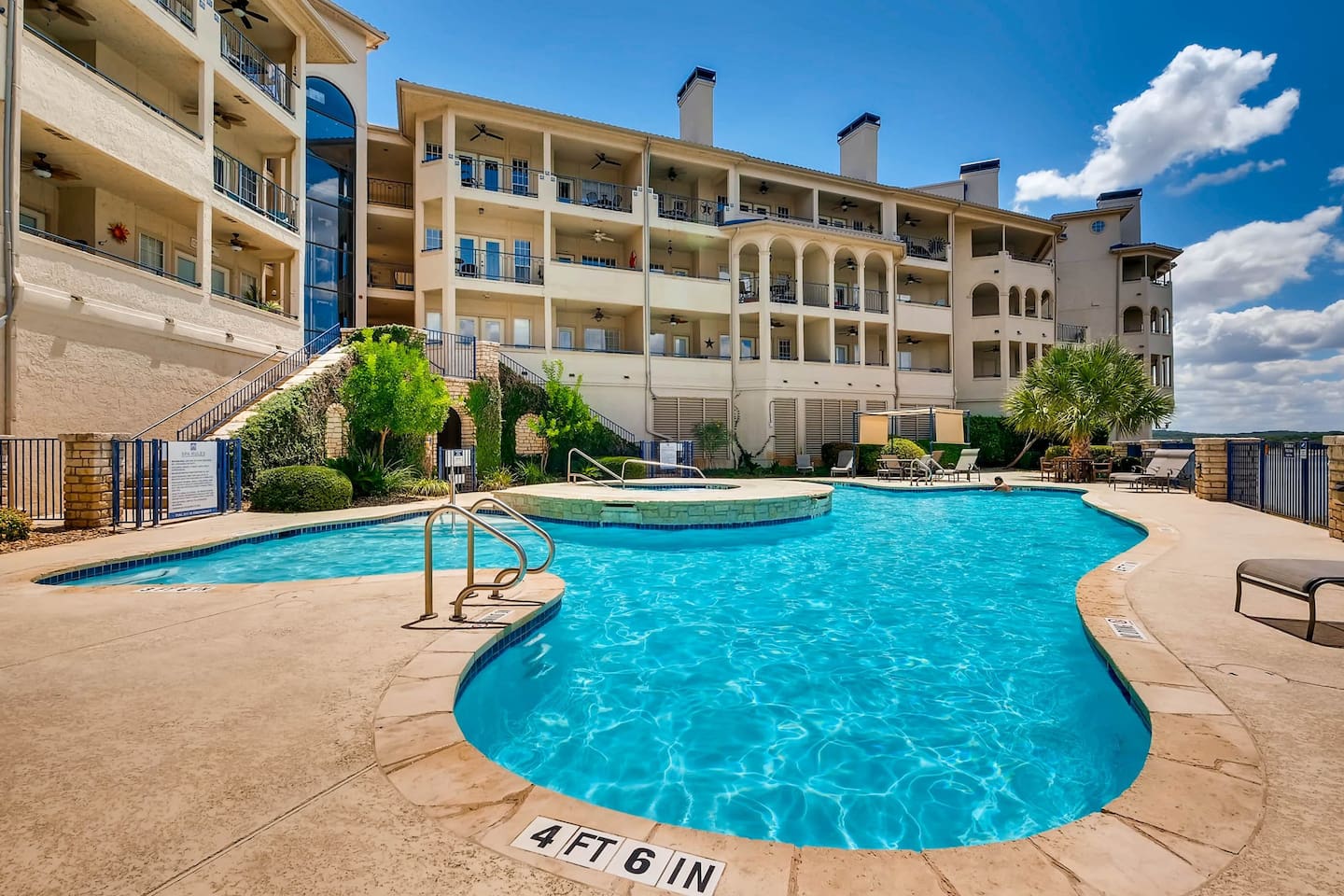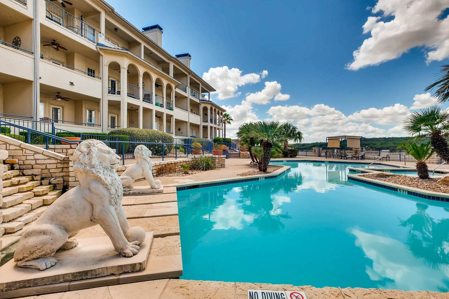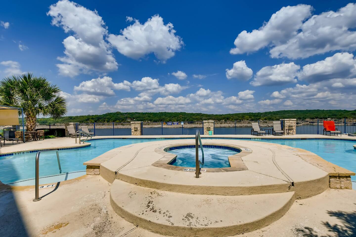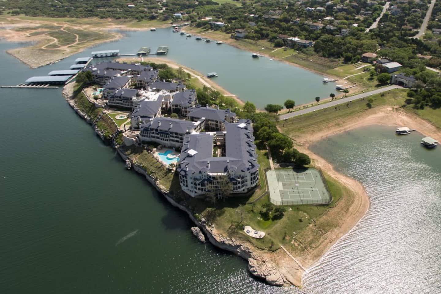 Breathtaking waterfront resort villa with 1750 sf, newly renovated & designer furnished. 3 bed/2 baths, sleeps 6-8 people with unique wrap around porch and panoramic view on lake travis. Full access to island amenities including indoor/outdoor pools, hot tub, spa/fitness facility, tennis court and picnic area. 2 large covered parking spots. 26' boat slip is available to rent. Pets are allowed with additional fee.