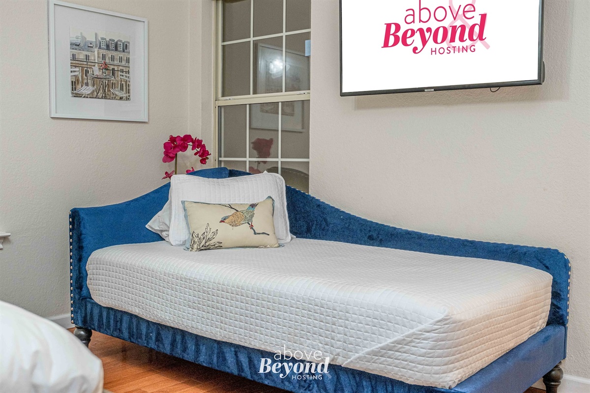 - Bedroom #2 – 1 Queen bed, 1 Twin bed