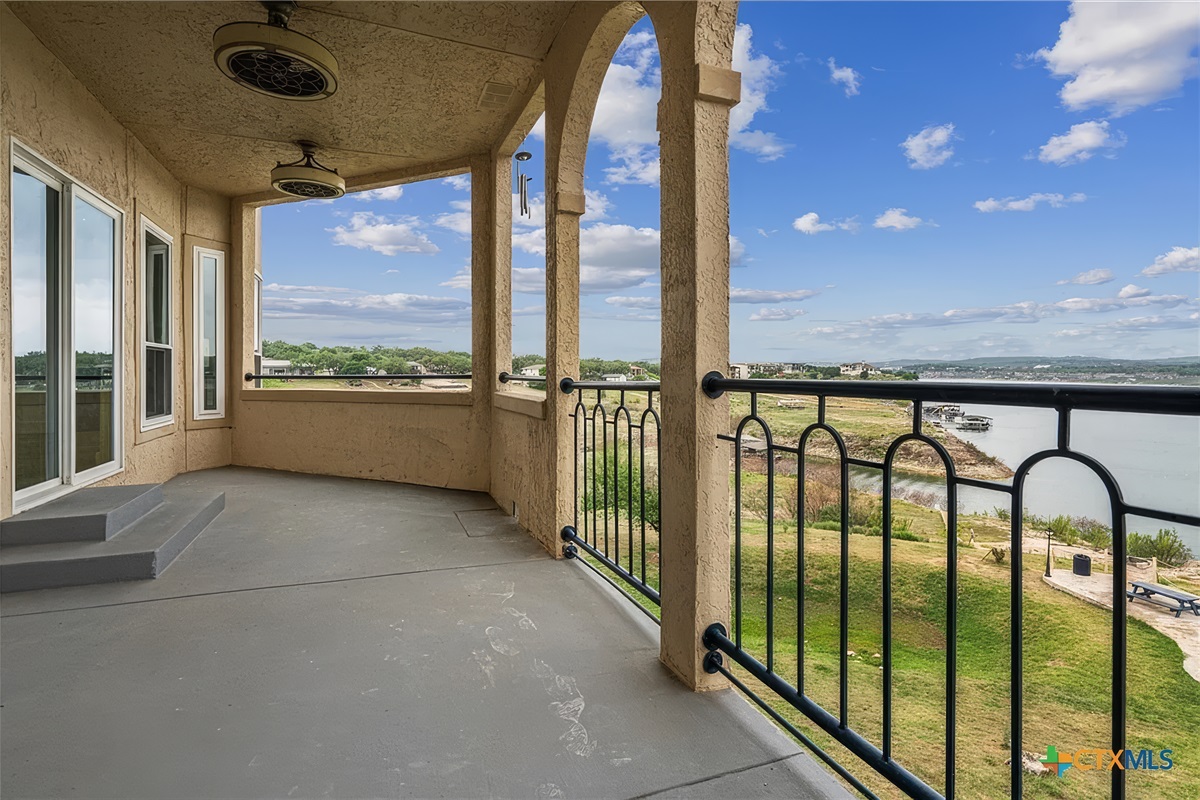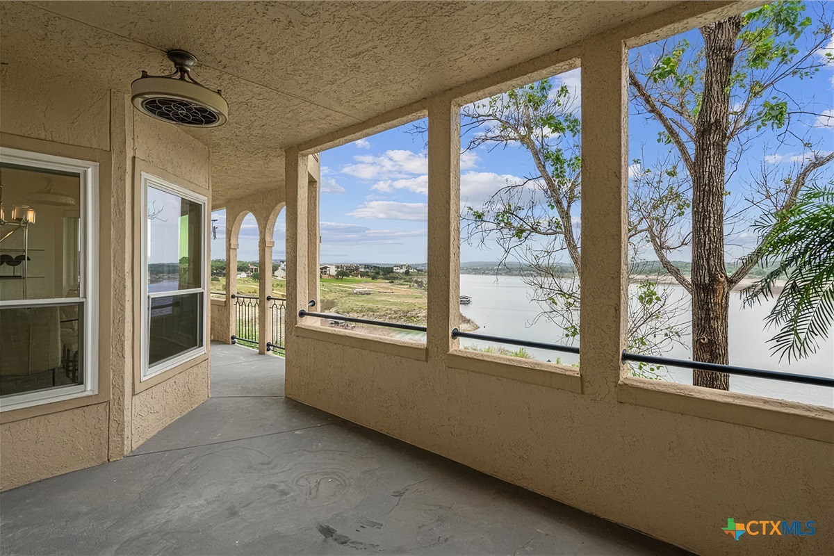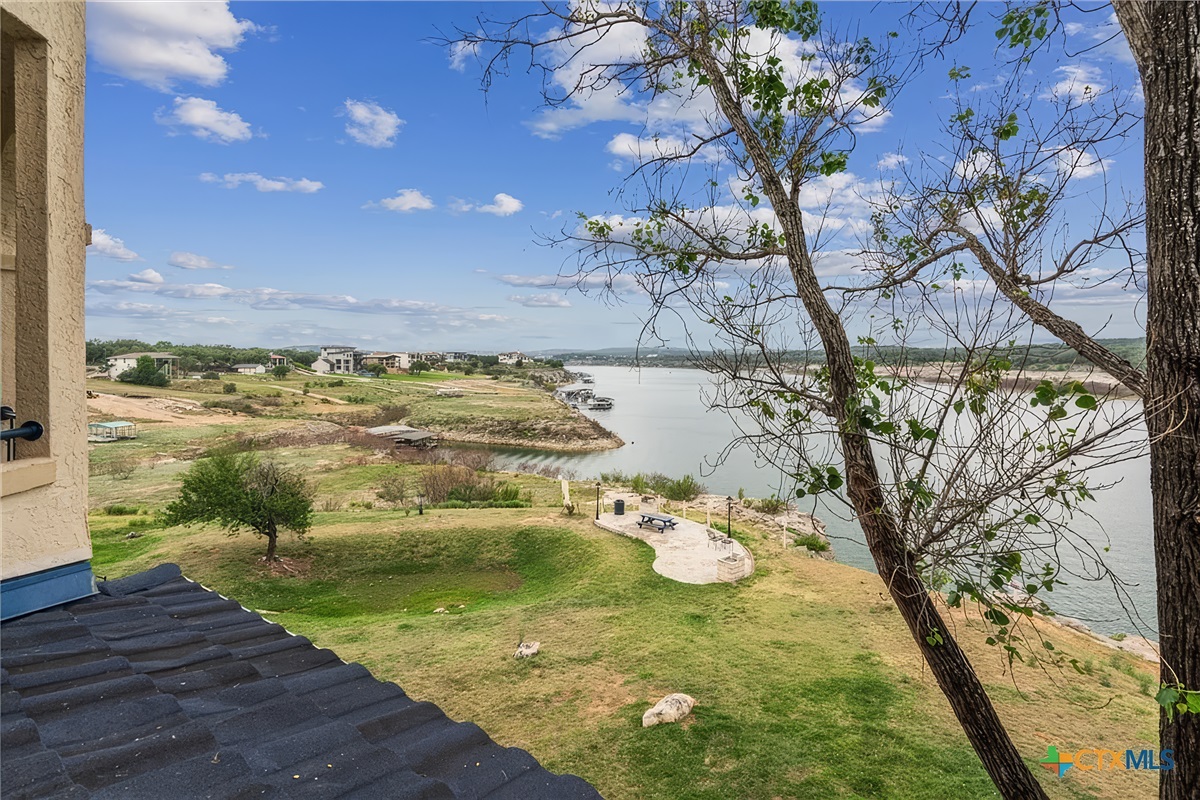 Finally, the large covered patio with expansive lake and hill country views is a desirable space to be enjoyed by all. There is a dining table for six, ceiling fan, and easy access from the living room. Just below this patio area is a picnic area with charcoal grills, fishing area, and lake access. This is truly a unique waterfront location!
