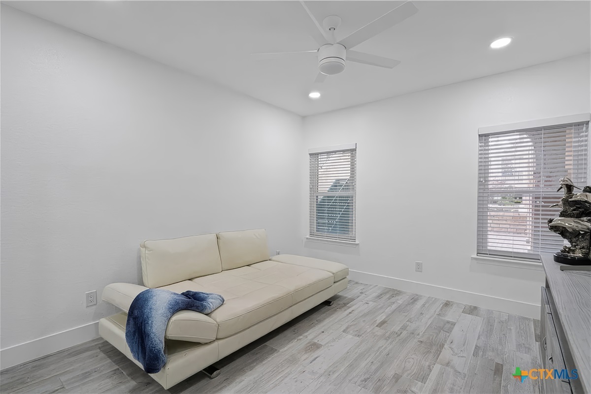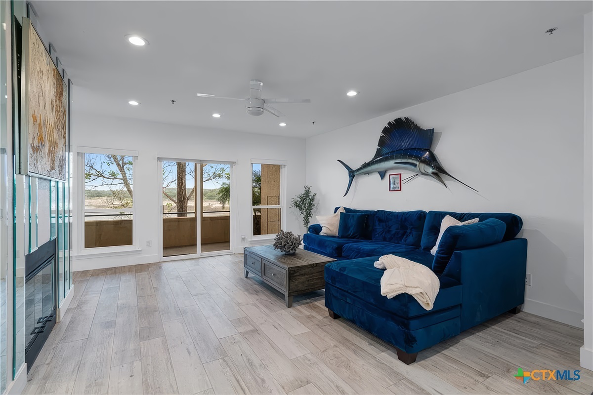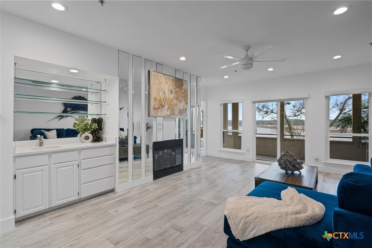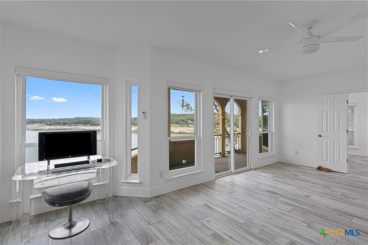 Finally, the large covered patio with expansive lake and hill country views is a desirable space to be enjoyed by all. There is a dining table for six, ceiling fan, and easy access from the living room. Just below this patio area is a picnic area with charcoal grills, fishing area, and lake access. This is truly a unique waterfront location!