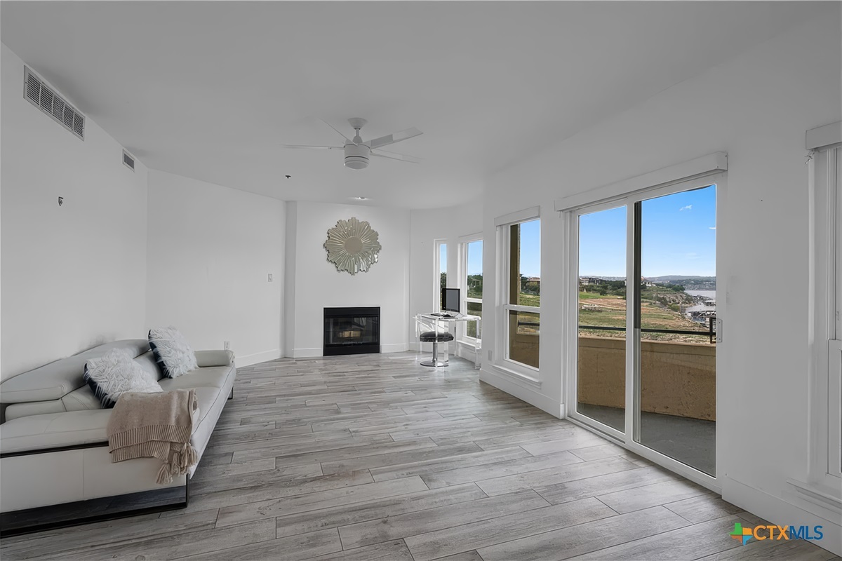 Watch the sunset from the best top floor location at the Island with panoramic views of Lake Travis and the Texas Hill Country. This villa is the largest space available at the Island on Lake Travis at 1750 sq ft with 3 bedrooms, 2 full baths and access to all the Island amenities including indoor & outdoor pools, hot tubs, workout facility, restaurant, tennis courts, picnic areas, and Day Spa open on weekends by appointment. This villa has been fully updated, has high vaulted ceilings throughout, and sleeps 8 comfortably. Sleeping quarters include a king bed in the master bedroom, queen bed in the guest bedroom, and 2 full size beds in the 3rd bedroom. Additional amenities include a large fully equipped kitchen, 2 fireplaces, HDTV, WiFi, washer/dryer, and two patios with separate seating areas and miles of scenic views and beautiful sunsets over Lake Travis. This top floor villa is THE preferred waterfront location at the Island and combines luxury, comfort, grand living areas, incredible views, and access to all the amenities at the Island on Lake Travis. Reserve online now and enjoy a wonderful time later with family and friends at this amazing waterfront location.