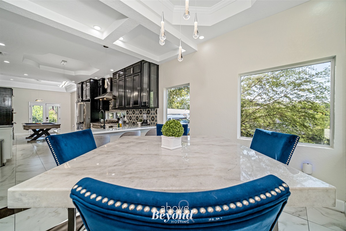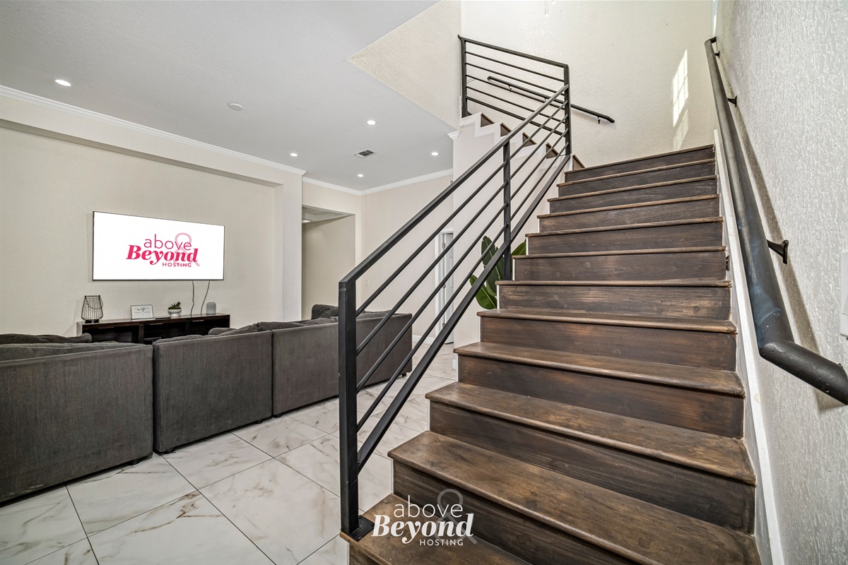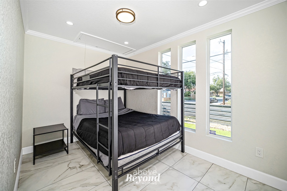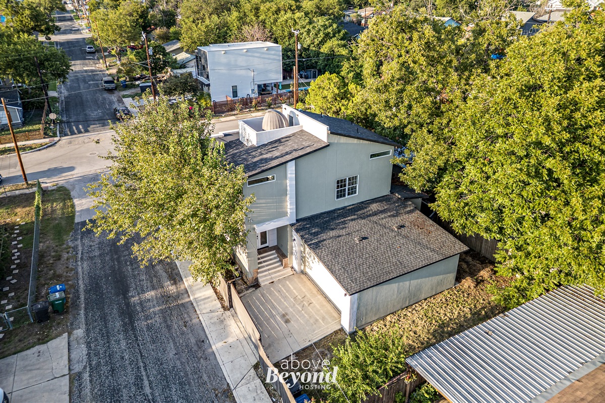 I spy with my little eye... the Alamo Dome! Have you seen the perfect evening hangout spot on the roof with a relaxed view to boot? Featuring ginormous bathrooms with multiple shower heads, a pool table amongst the sprawling downstairs area, a private brunch spot overlooking the greenery, and minutes- access to downtown and the Alamo Dome... this is the spot for large families and groups to land. We have multiple properties next to each other so invite your friends and family– everyone can come!