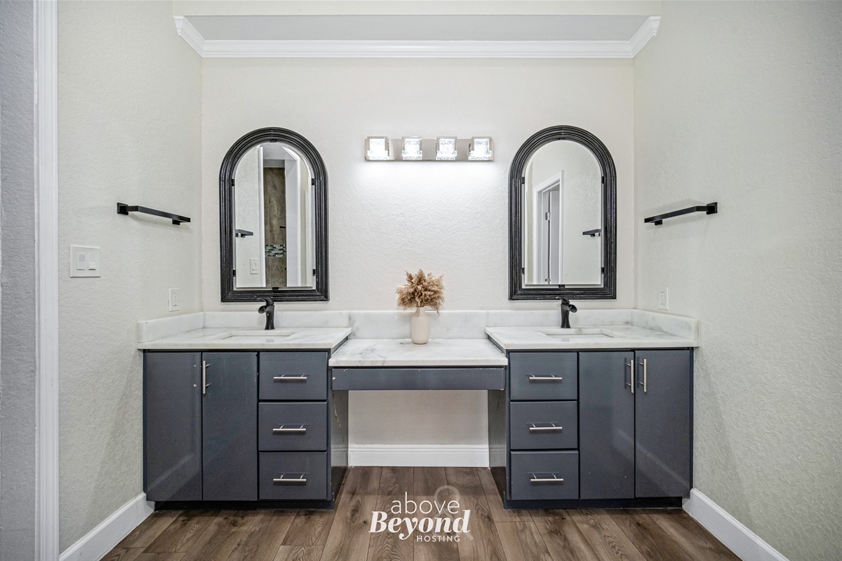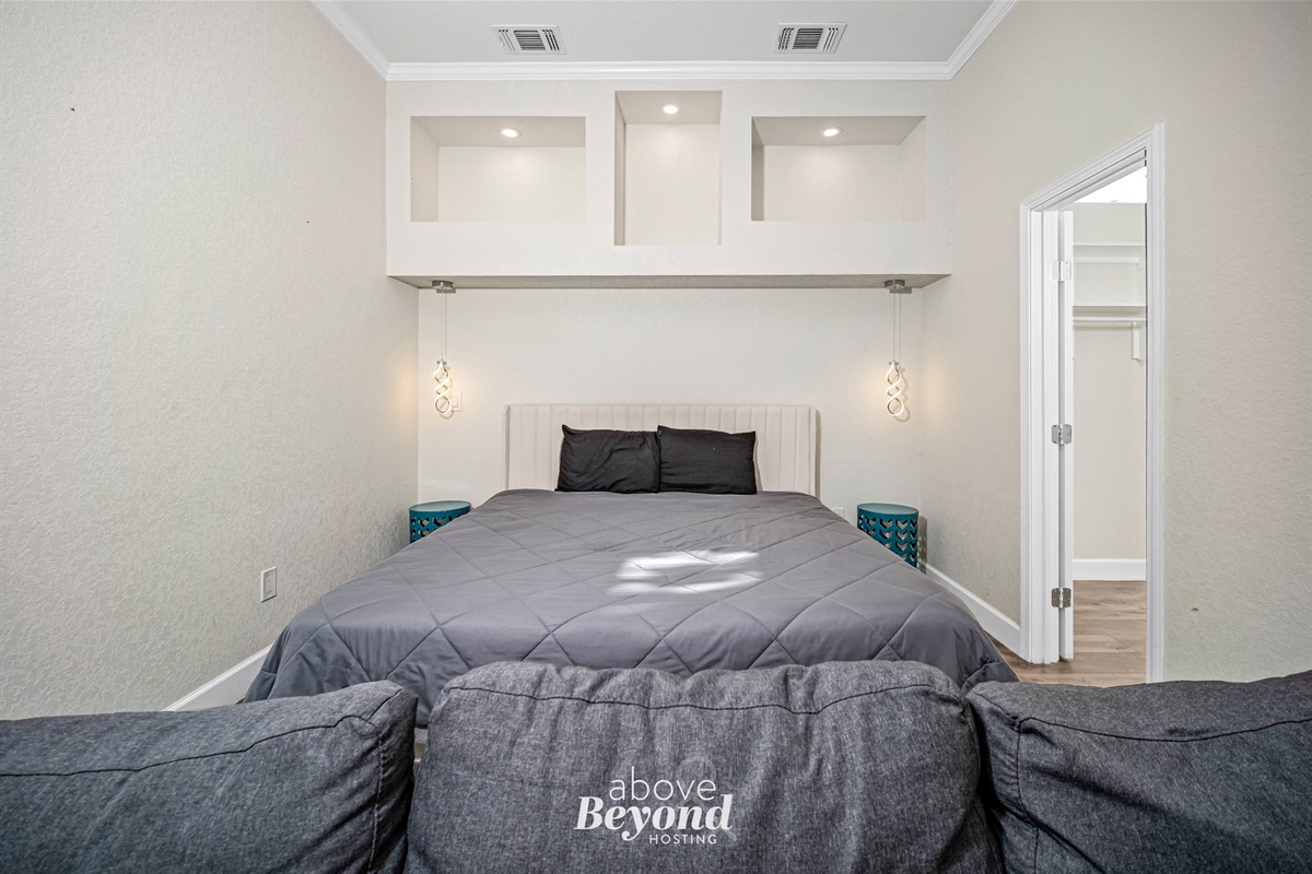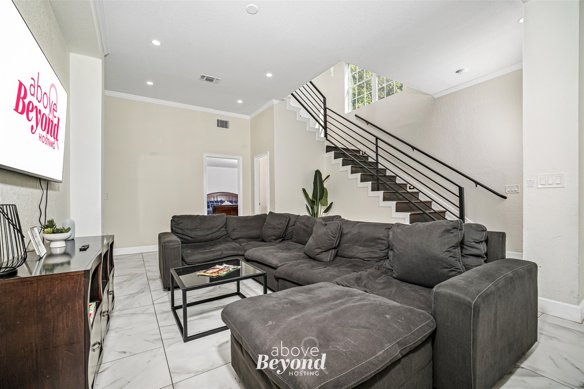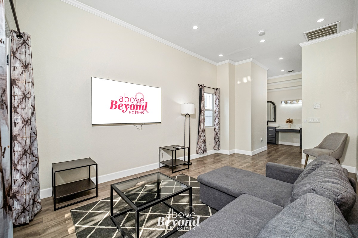 I spy with my little eye... the Alamo Dome! Have you seen the perfect evening hangout spot on the roof with a relaxed view to boot? Featuring ginormous bathrooms with multiple shower heads, a pool table amongst the sprawling downstairs area, a private brunch spot overlooking the greenery, and minutes- access to downtown and the Alamo Dome... this is the spot for large families and groups to land. We have multiple properties next to each other so invite your friends and family– everyone can come!