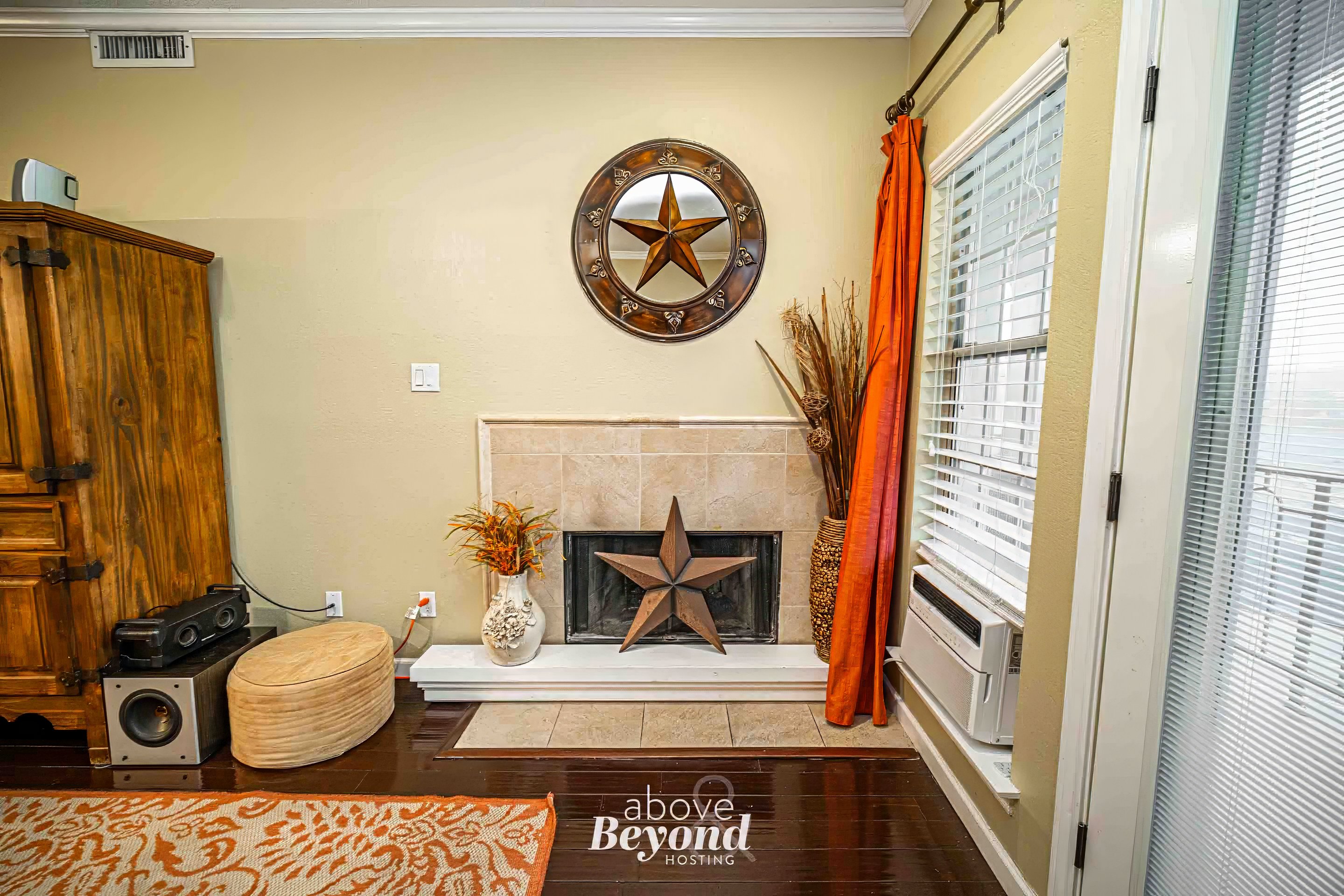 Guests don't have access to one closet and the fireplace is for decoration only.