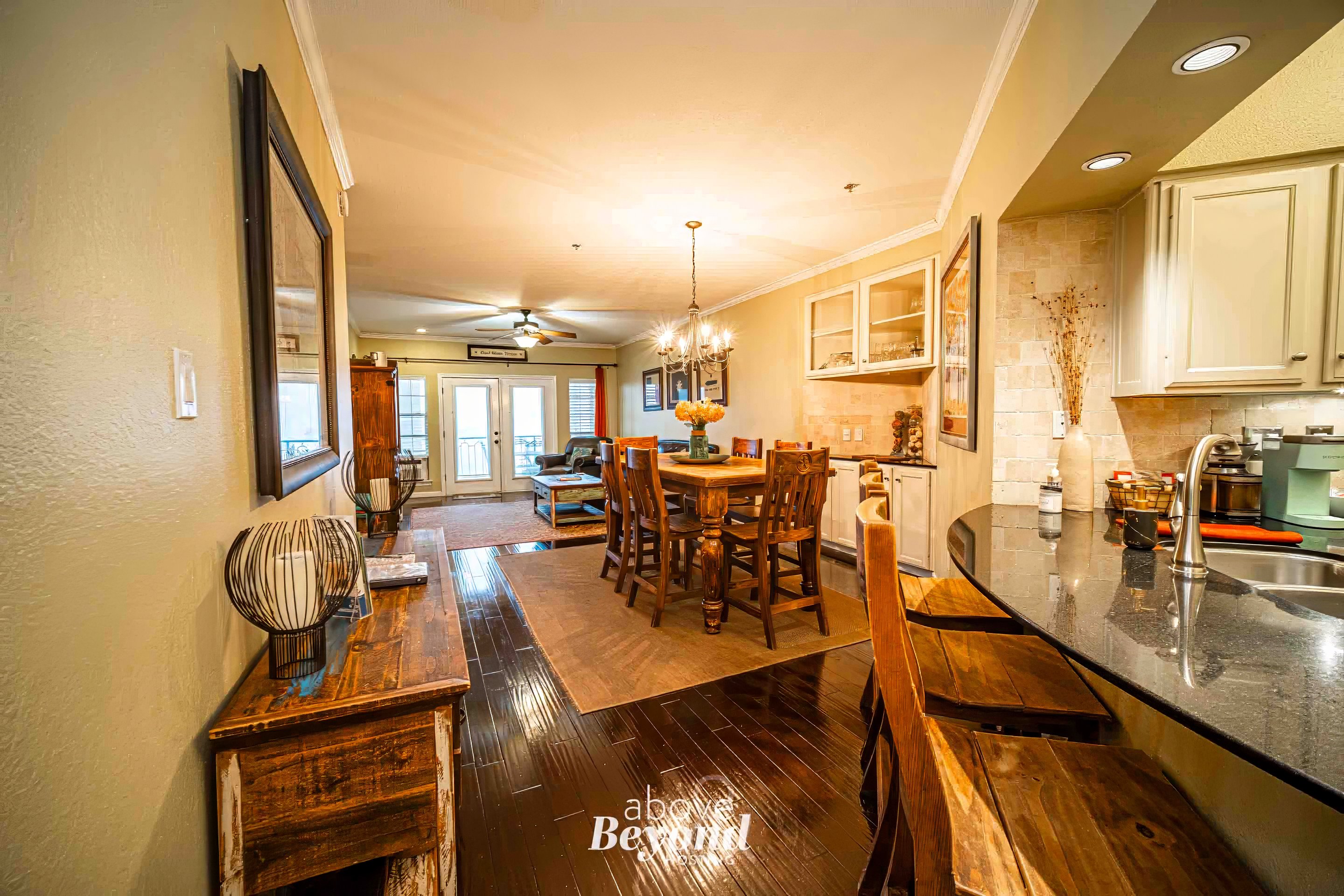 Come spend your Holidays in luxury on an Island! Watch the sunset from your own balcony! Lake levels are low and you still have a lake view from our balcony! Amenities are up and running at normal hours including the sauna and locker rooms. On site Spa is OPEN!! Restaurant on site is open and delicious. with limited hours.